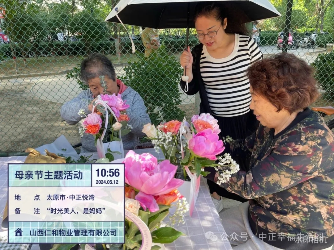 此次活动以花为“语言”表达对母亲的爱,点缀生活中的美让大家在感受美、欣赏美、创造美的过程中享受幸福温暖的小区生活,让美妙的时光在记忆中留存,仁和物业始终秉承“善待您一生”的服务理念,让广大业主朋友幸福感持续提升。